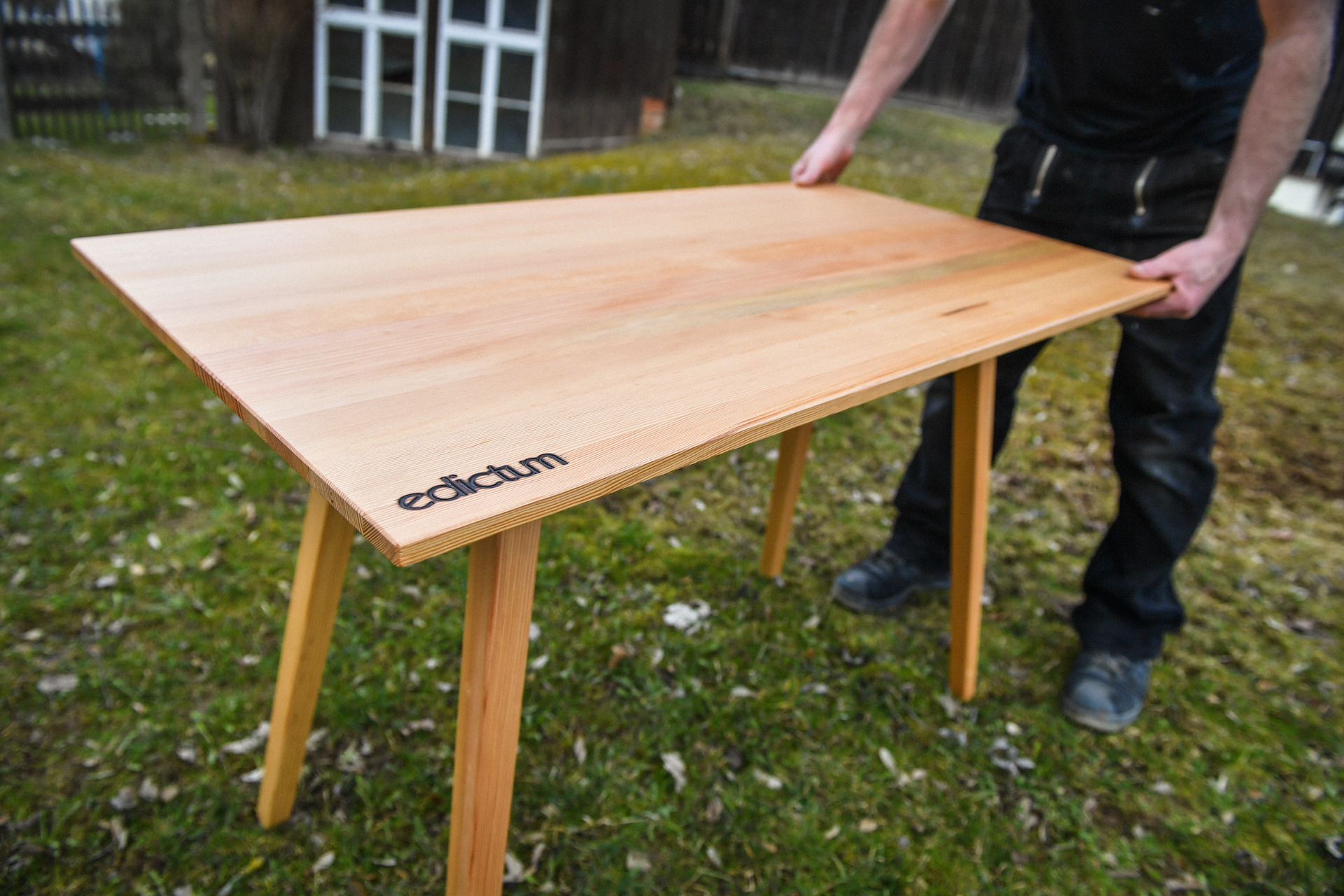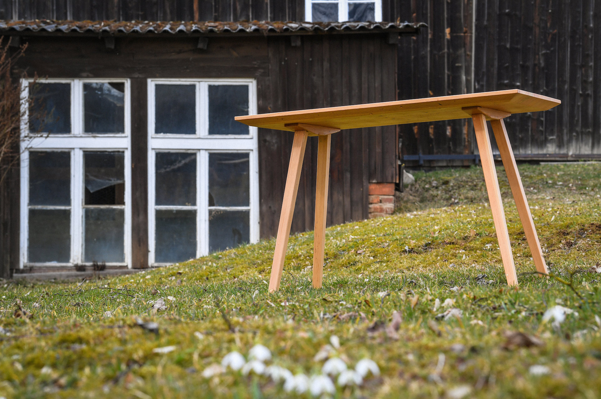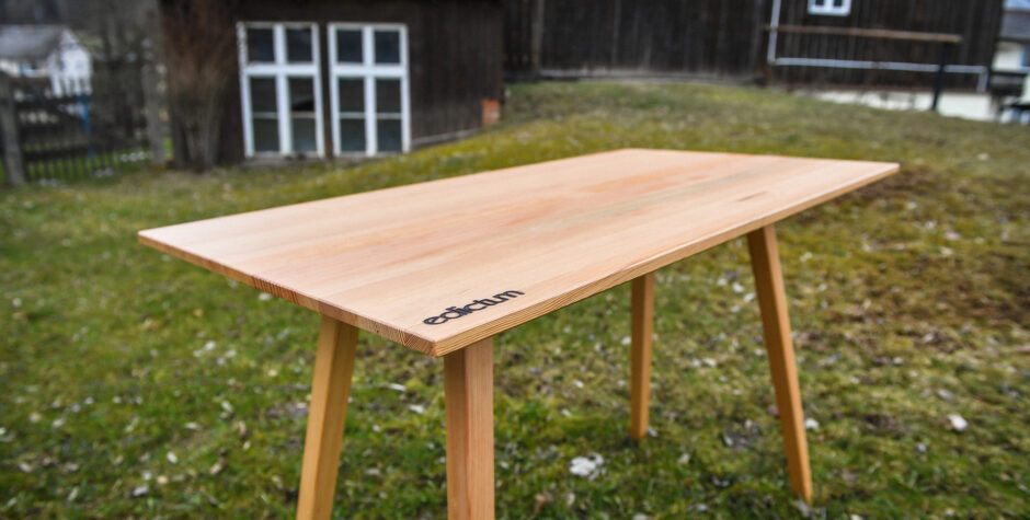 Oops, there’s a dining table made of Oregon Pine theater floorboards from the Gewandhaus in Zwickau on the meadow!