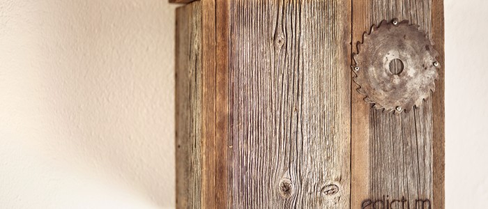 Mailbox made from weathered planks of an old barn. As nameplate a saw blade is used. Untreated wood for outdoor use. The long existence to wind & weather makes it… read more →