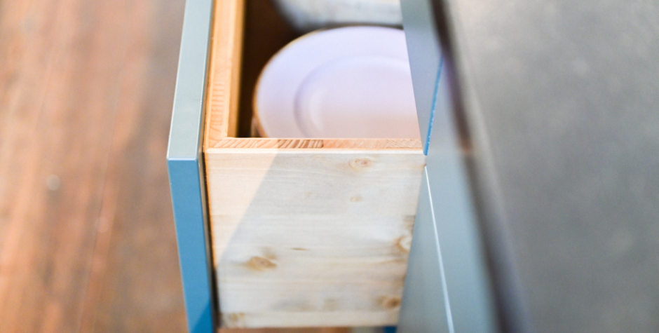 Der Korpus und die Laden aus Fichte-3-Schichtplatte, schwarz matt lackiert. Kein Hochglanz, kein Effekt. Eine Oberfläche, die das Licht schluckt statt es zu spiegeln. Reduktion als Haltung. Handwerklich gefertigt, mit dem Wissen, dass Möbel nicht für einen Katalog entstehen, sondern für Menschen.