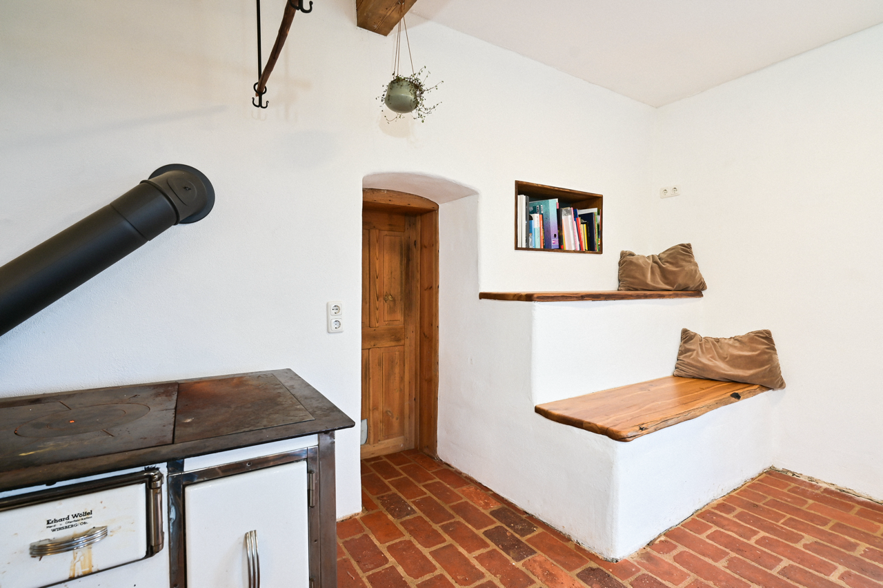 Die Mauern haben Patina. Der Boden kennt Generationen. Und mitten in diesem gewachsenen Raum steht eine Küche, die nicht versucht, moderner zu sein als die Zeit – sondern ihr mit Haltung begegnet.